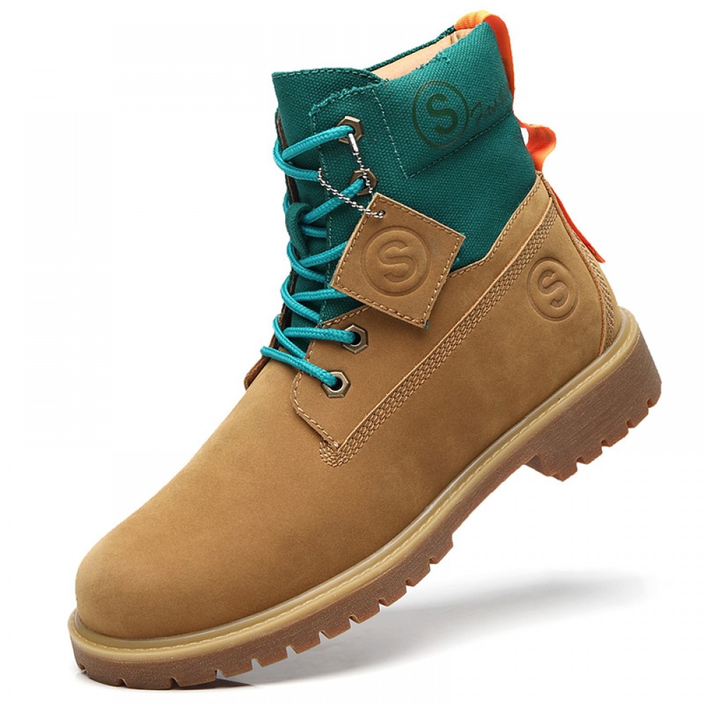 Men's Leather Short Martin Boots Casual Trend Tooling Boots High-Top Shoes