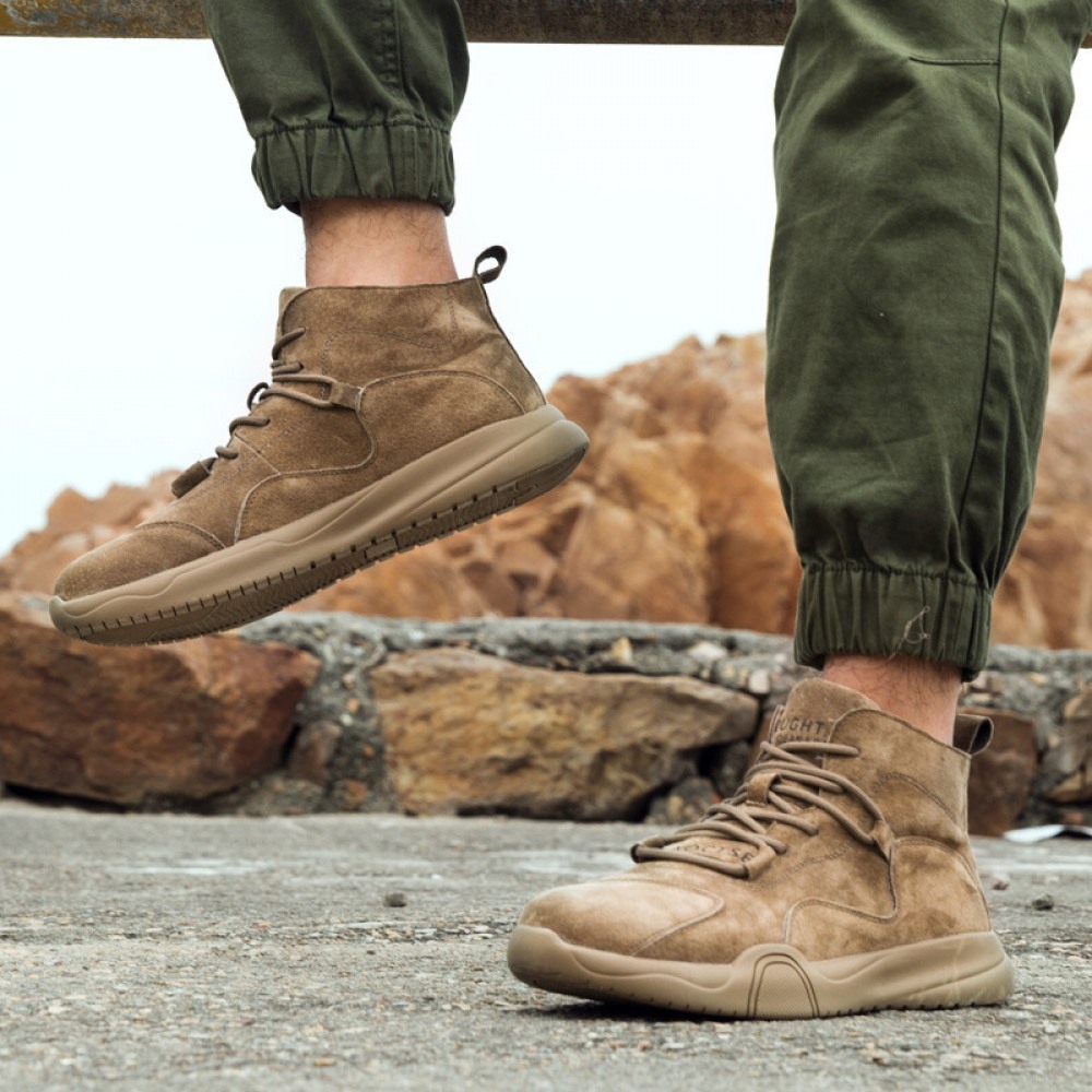 Men's Leather Short Martin Boots Casual Trend Tooling Boots High-Top Shoes