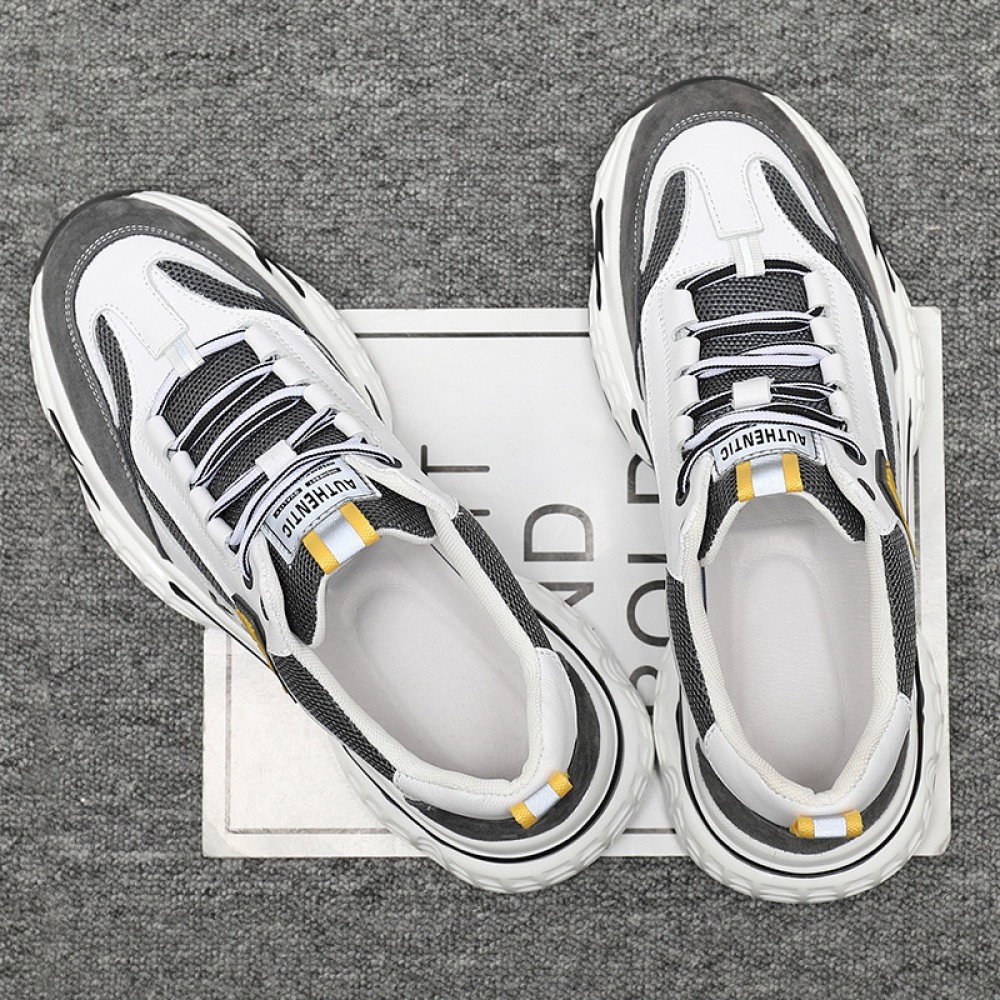Men's Leather Fashion Casual Trendy Shoes Autumn Thick Soles Increased Breathable Mesh Sports Shoes