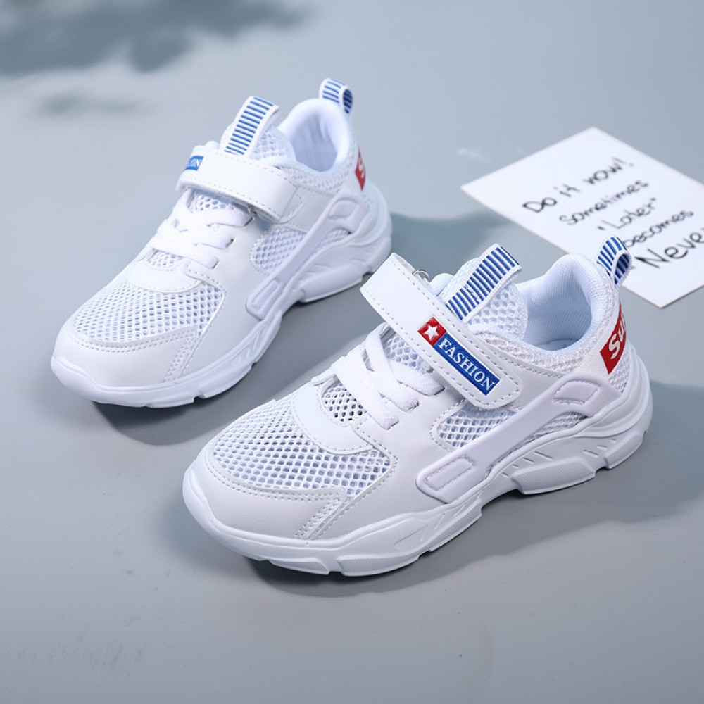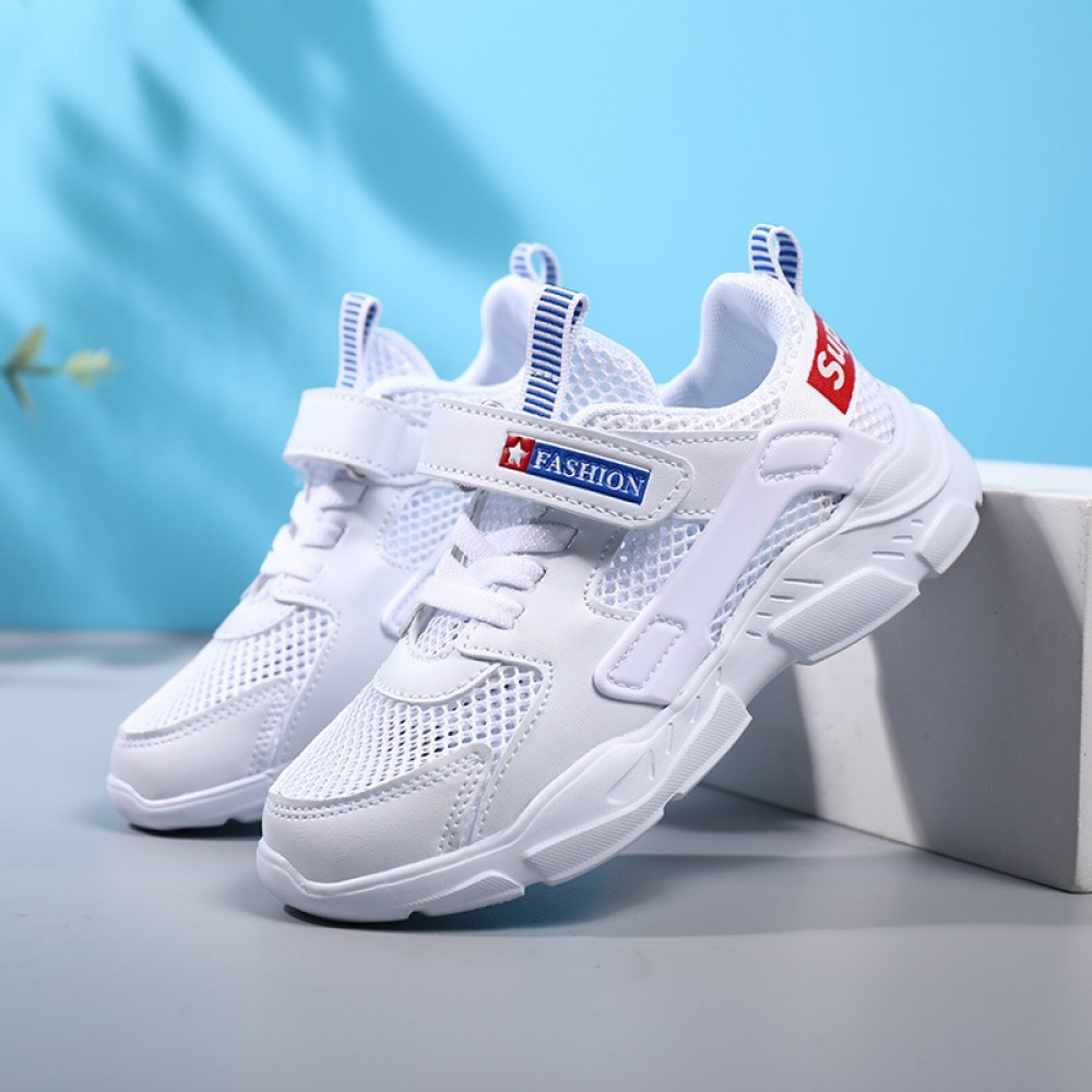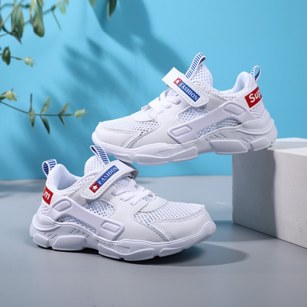 Children's White Spring New Breathable Mesh Mid-Large Casual Sports Shoes