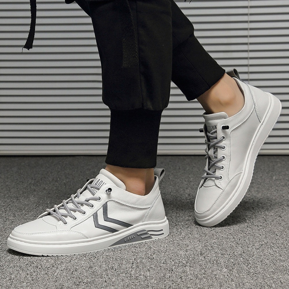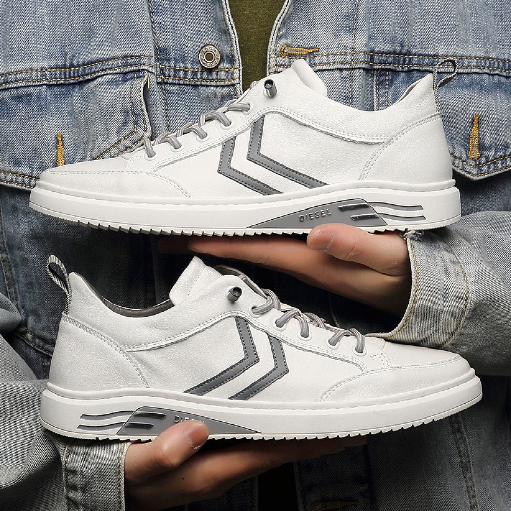 Men's Autumn New Trend Sports Casual Shoes Low-Top Leather Sneakers White